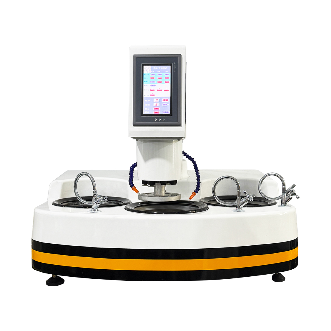 ZMP-3000Z智能金相磨拋機采用8寸彩色觸摸屏PLC控制,實現(xiàn)真正的一鍵式研磨拋光。研磨結(jié)束后自動切換到拋光模式進行拋光,整個研磨拋光過程全程自動定時噴淋冷卻水及智能化添加磨拋液。達到方便、快捷、高效、無人值守式智能磨樣。 | 型號 | ZMP-3000Z | | 機體形式 | 臺式三盤(磨頭自動鎖緊) | | 夾持數(shù)量 | 8 個(30mm*6+40mm*2,特殊規(guī)格樣件可定做) | | 磨拋形式 | 智能一鍵式,研磨及拋光過程自動切換 | | 加壓方式 | 中心加壓 /(氣動)單點加壓 | | 控制方式 | 彩色觸摸屏,PLC 控制 | | 操作系統(tǒng) | 智能一鍵式(中途無需人為操作) | | 磨拋轉(zhuǎn)速 | 智能無極調(diào)速(50-1500 轉(zhuǎn) / 分鐘) | | 磨頭轉(zhuǎn)速 | 20-200 轉(zhuǎn) / 分鐘(自動調(diào)速) | | 磨拋方式 | 智能 / 自動 / 手動 | | 磨樣參數(shù) | 智能存儲,最多可存儲 100 種磨拋方案 | | 壓力加載 | 自動加載,智能切換 | | 磨料添加 | 智能程控式自動添加 | | 噴料時間 | 智能設(shè)定,最小噴料時間 0.1S | | 加料間隔 | 智能程控,最小加料間隔 0.1S | | 冷卻方式 | 水冷 | | 磨拋轉(zhuǎn)換 | 自動切換,無需人工搬動磨頭 | | 磨樣時間 | 0-9999 秒 *3 | | 主機功率 | 1000W*3 | | 磨樣直徑 | 30mm*6+40mm*2(特殊規(guī)格尺寸可以選配) | | 磨盤直徑 | Φ230mm/Φ200mm 選擇 | | 電源 | 220V/50HZ | | 外形尺寸 | 1200*800*700mm(長 * 寬 * 高) | | 凈重 | 150KG | | 毛重 | 170KG |