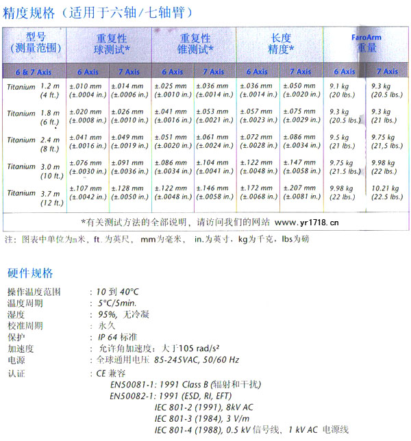 一、MC003-TIARM便攜式鈦金三坐標(biāo)產(chǎn)品簡(jiǎn)介: 靈活,精準(zhǔn),價(jià)格合理,最新便攜式CMM 當(dāng)您想使用Faro Platinum Arm鉑金系列測(cè)量臂的便攜式測(cè)量和逆向工程性能時(shí),且精度要求較低時(shí)--Titanium FaroArm鈦金系列測(cè)量臂是您最經(jīng)濟(jì)實(shí)惠的選擇。 Titanium鈦金系列的高精度―結(jié)合其輕便的結(jié)構(gòu)以提供極好的便攜性―這意味著在工廠車(chē)間即可滿(mǎn)足他們的測(cè)量需要。Titanium FaroArm測(cè)量臂滿(mǎn)足任何人任何地點(diǎn)進(jìn)行檢測(cè),逆向工程或CAD-to-Part (CAD與實(shí)際工件)的分析,高精度工裝等。 本公司歐洲拓展了便攜式測(cè)量臂的產(chǎn)品線,推出了新型的Faro Titanium arm鈦金七軸臂,以滿(mǎn)足生產(chǎn)和設(shè)計(jì)的精度需要。第七軸的設(shè)計(jì)使測(cè)量臂Arm更靈活,并可連接使用laser scanner激光掃描頭,其特別的自由度能保證scanner 掃描頭始終處于最合適的位置以提供最有效的掃描,非凡的靈活性和手握式掃描給用戶(hù)帶來(lái)非接觸式掃描的眾多優(yōu)勢(shì)。 Titanium Arm鈦金系列臂的輕質(zhì)量和便攜性可以直接應(yīng)用于生產(chǎn)和加工車(chē)間,滿(mǎn)足完成測(cè)量任務(wù),結(jié)合功能強(qiáng)大的CAM2軟件使用可對(duì)實(shí)際工件進(jìn)行數(shù)模對(duì)比,在生產(chǎn)期間進(jìn)行實(shí)時(shí)的幾何對(duì)比。CAM2 Measure軟件同時(shí)也具有獲取工件數(shù)字化資料的逆向工程功能。 多種安裝方式能快速方便地定位測(cè)量臂,例如安裝卡盤(pán),磁力吸盤(pán)和三角架等,內(nèi)置式電源使Arm測(cè)量臂不依靠額外電源即可工作從而更提高了測(cè)量臂的便攜性。 二、MC003-TIARM便攜式鈦金三坐標(biāo)技術(shù)參數(shù):
